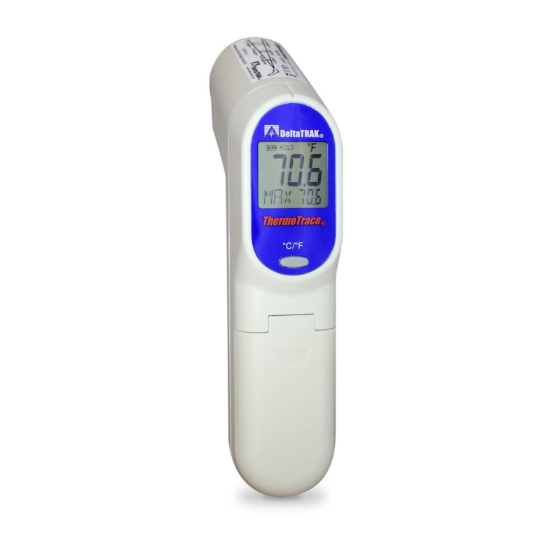 Nhiệt kế hồng ngoại DeltaTrak, model 15041, là một nhiệt kế hồng ngoại nhỏ gọn, chính xác và đáng tin cậy được thiết kế cho độ bền. Được thiết kế để sử dụng chủ yếu trong môi trường dịch vụ thực phẩm, thiết bị này được chiếu bằng laser với màn hình lớn, chiếu sáng ngược. Tỷ lệ trường nhìn 12: 1, thiết kế súng cầm tay thoải mái và phạm vi nhiệt độ rộng khiến nó trở nên lý tưởng cho các ứng dụng an toàn thực phẩm / HACCP. Phạm vi đo nhiệt kế của súng hồng ngoại ThermoTrace là -76 ° F đến 932 ° F (-60 ° C đến 500 ° C). Model 15041 là nhiệt kế hồng ngoại để theo dõi nhiệt độ không tiếp xúc. Được hỗ trợ bởi các dịch vụ và bảo hành vượt trội của DeltaTrak, bộ phận này là công cụ đo nhiệt độ hồng ngoại bề mặt cuối cùng.