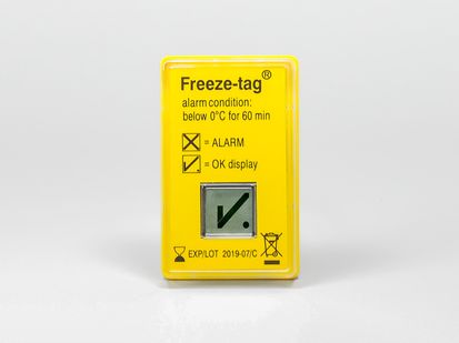 Chỉ thị đông băng điện tử Freeze-tag được sử dụng để giám sát và ghi nhận tình trạng đông băng của vắc-xin, thuốc, dược phẩm, hóa chất,… trong quá trình vận chuyển hoặc bảo quản. Khi nhiệt độ giảm xuống dưới mức đóng băng, chỉ thị sẽ thay đổi màu sắc, giúp xác định liệu sản phẩm đã bị đông băng hay chưa.